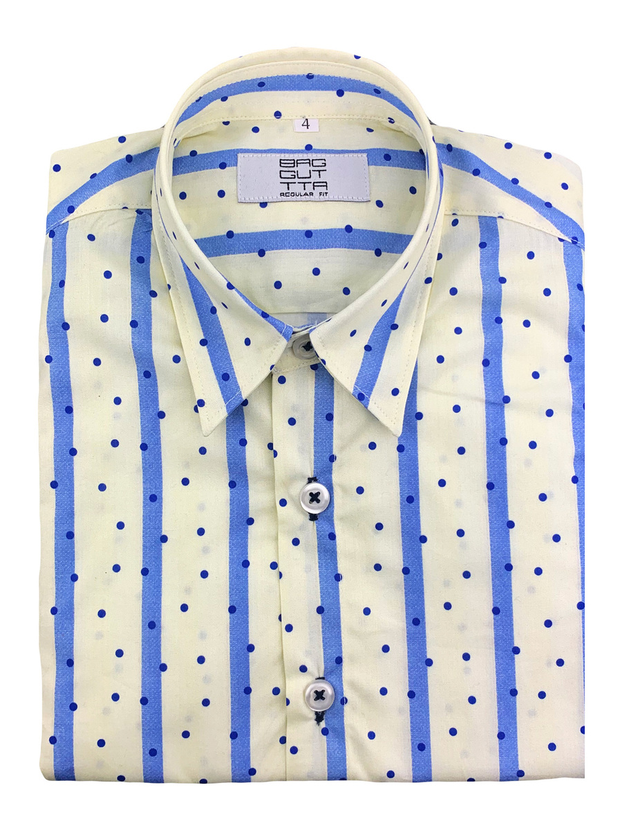 Πουκάμισο παιδικό στο χρώμα της βανίλιας, με μπλε πουά και γαλάζιες ρίγες. Από 100% βαμβάκι.