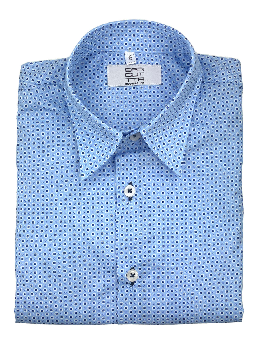 Γαλάζιο παιδικό πουκάμισο με μπλε μικροσχέδιο. Σύνθεση 100% βαμβάκι.